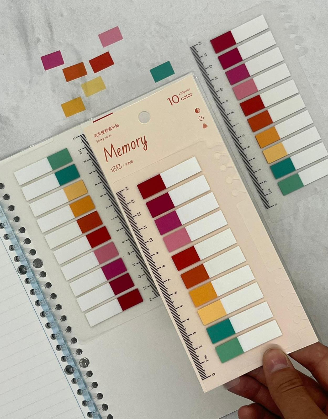 10 Yarım Renkli Cetvelli Memory Şeffaf Pet İndeks / Index Sticker / Sticky Note / Post-it