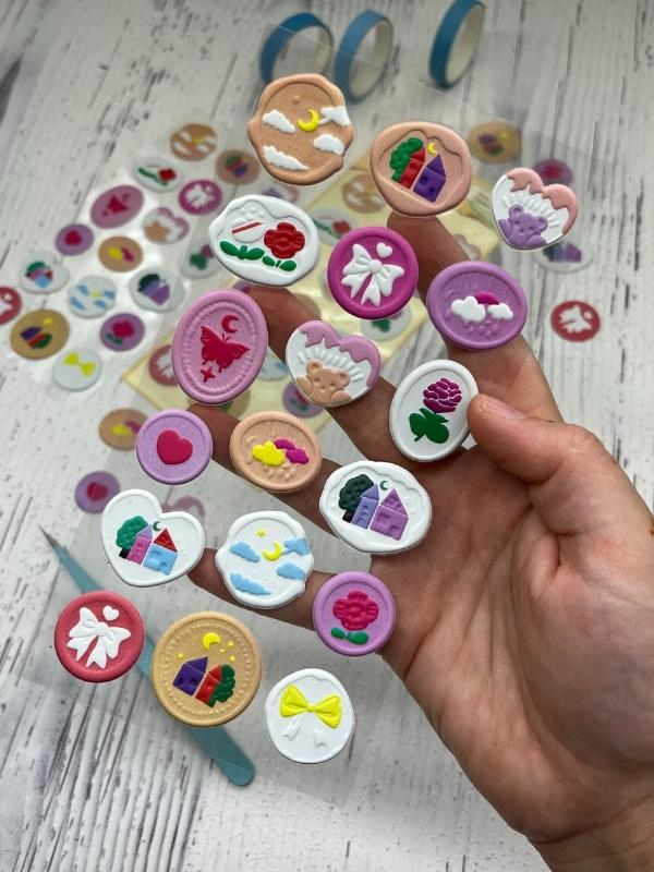 Her biri 3D kabartmalı yapısıyla hem göz alıcı hem de dokunsal bir deneyim sunan bu çıkartmalar, günlük planlayıcılarınızdan hediye paketlerinize kadar her alana zarif bir hava katacak. 🎀