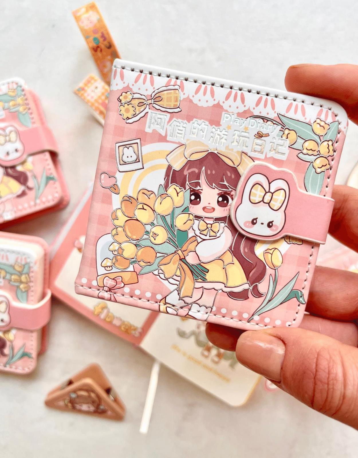 Kawaii Sevimli Kız ve Çiçekler Pembe Renkli Desenli 256 Sayfa Mini Defter / Mıknatıslı Ajanda