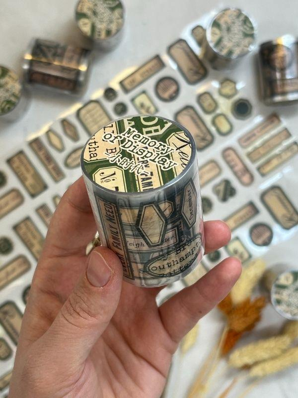 Memory of Display Retro Yeşil Renk Tek Tek Çıkartma Pul Washi Bant/Sticker/Çıkartma/Bullet Journal/Defter Süsleme