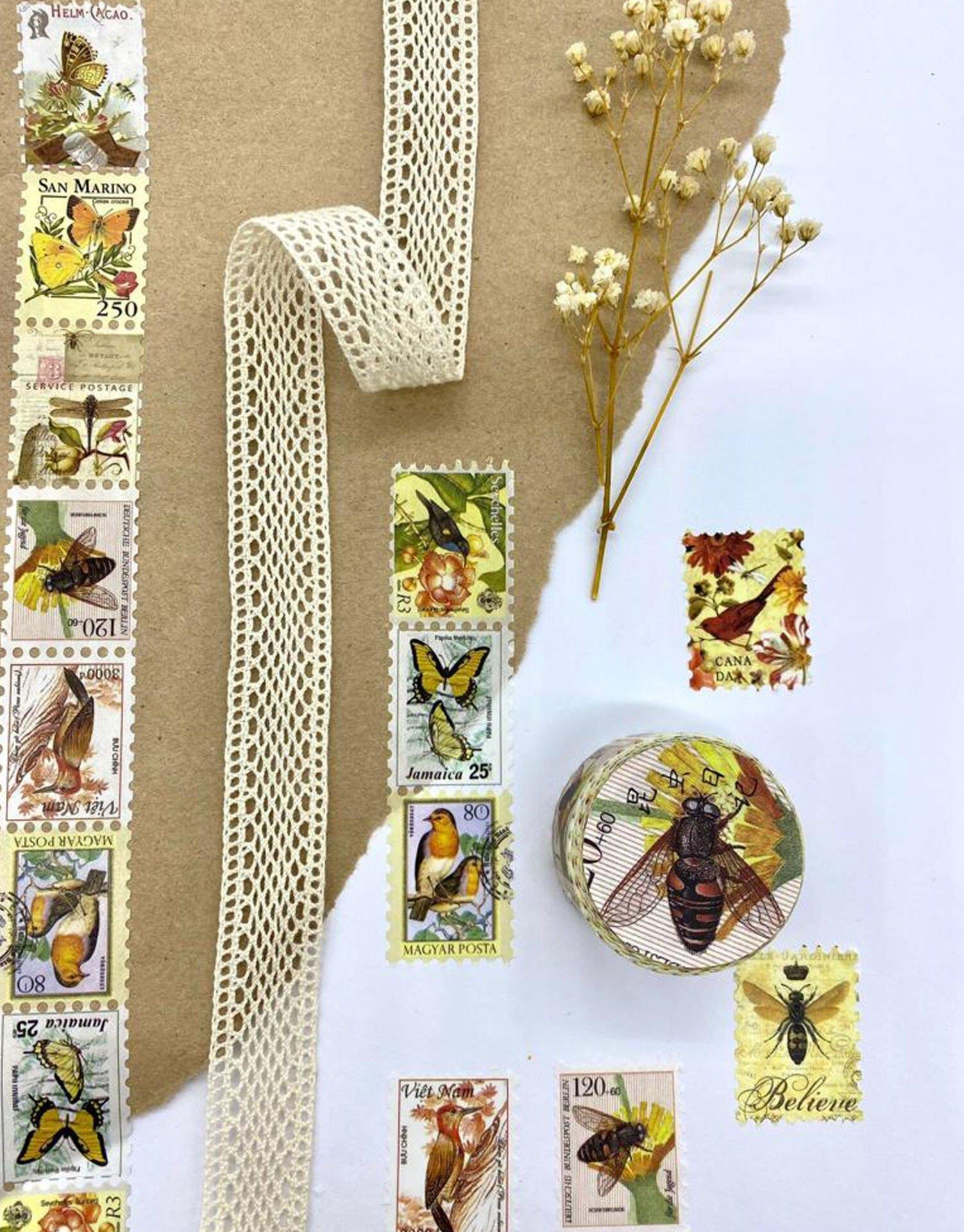 Pul Arılı Tek Tek Çıkartmalı - Washi Bant - Sticker - Bullet Journal - Defter Süsleme