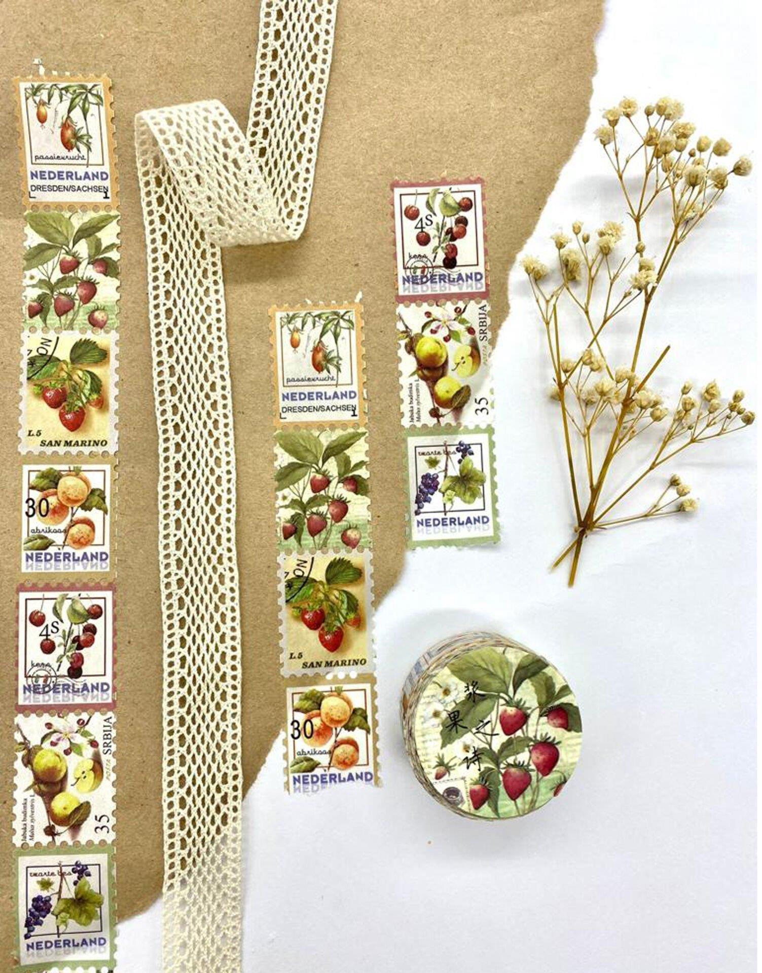 Pul Çilekli Tek Tek Çıkartmalı - Washi Bant - Sticker - Bullet Journal - Defter Süsleme