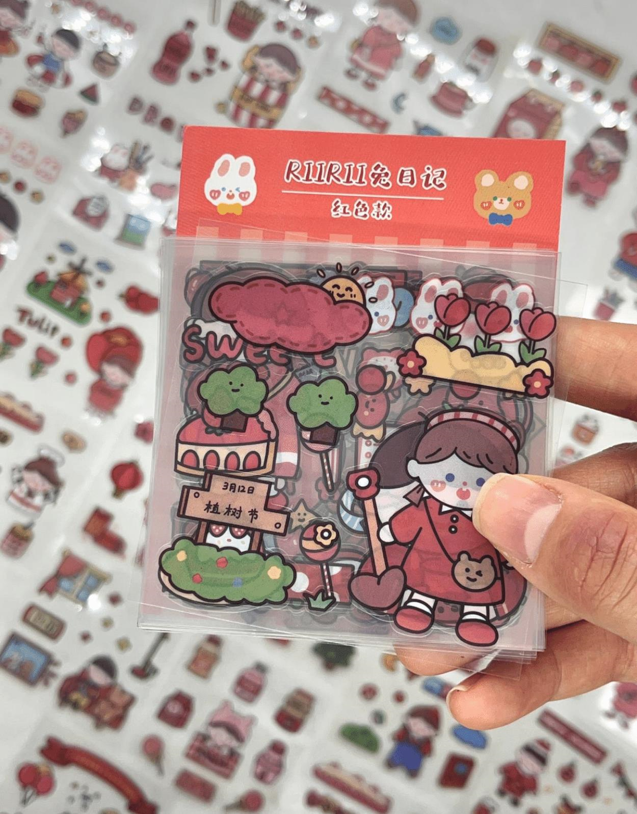 Çeşit çeşit sevimli desenli stickerlar tek bir pakette toplandı.